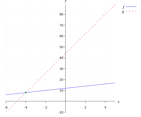 Donc le point d'intersection est: #\rv{-4, 8}#.