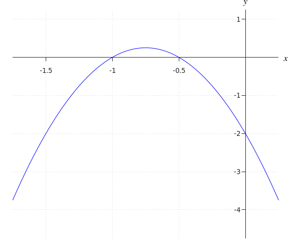 f'(2)&=&4&\text{por lo tanto, }f\blue{\text{ crece }}\text{en }x=2\\f'(1)&=&-5&\text{por lo tanto, }f\green{\text{ decrece }}\text{en }x=1\end{array}