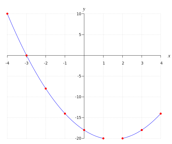 #\boldsymbol{y}# | #10# | #0# | #-8# | #-14# | #-18# | #-20# | #-20# | #-18# | #-14# |