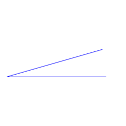 Un #\blue{\textbf{ángulo}}# está determinado por un punto, dos semirrectas en el plano que comienzan en ese punto y un lado del plano encerrado por las dos semirrectas. A menudo indicamos este lado elegido con un pequeño arco circular o dos líneas cortas.