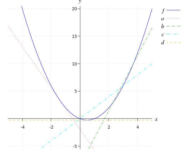¿Cuáles de estas rectas son líneas tangentes de la gráfica #f(x)#?